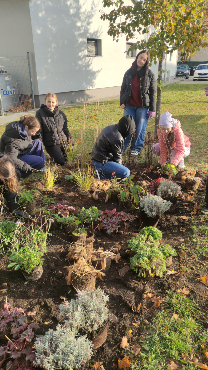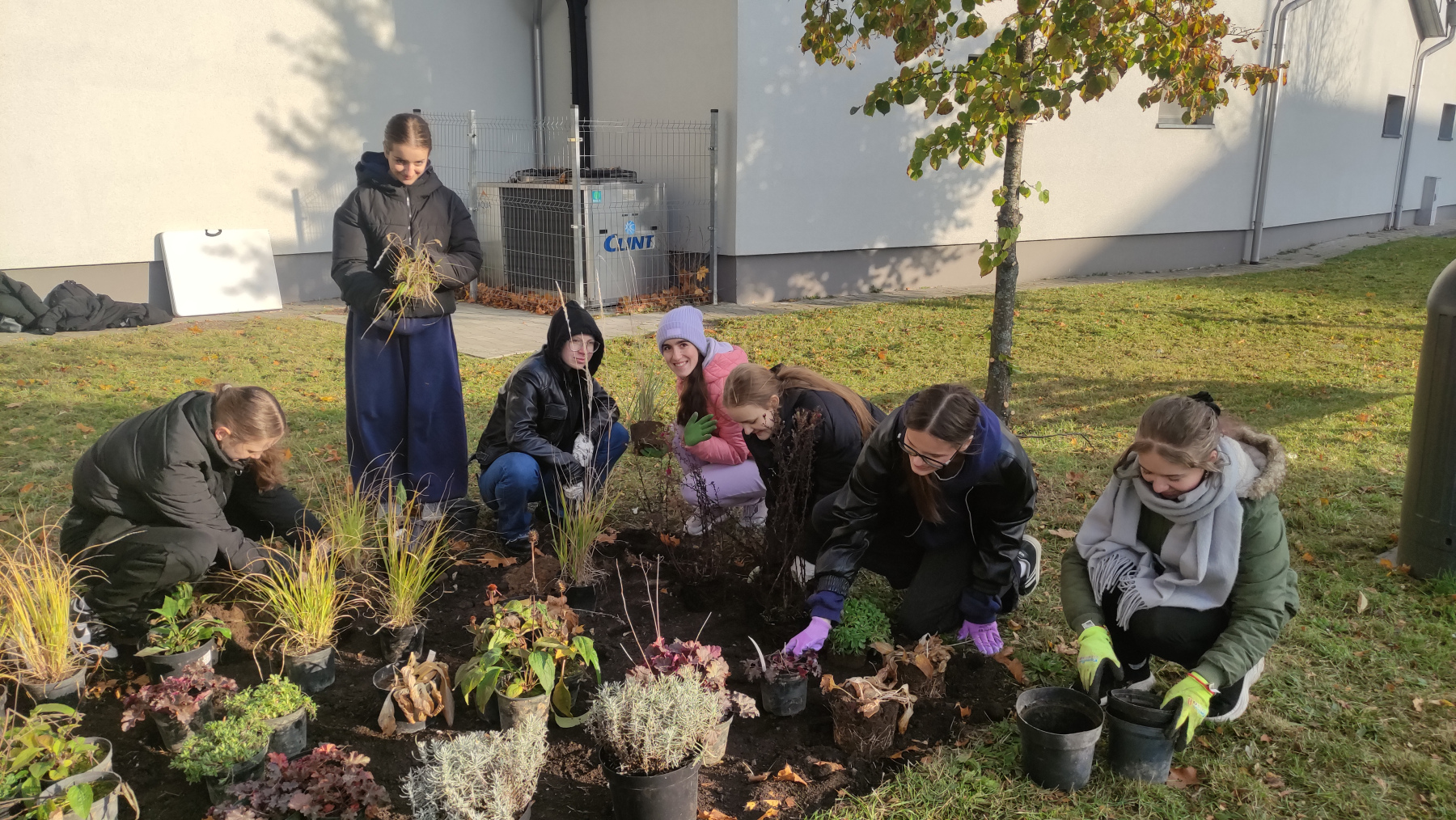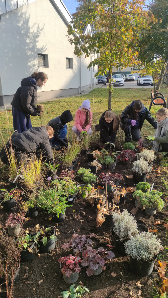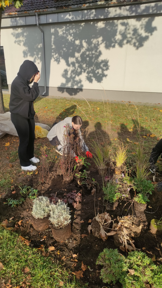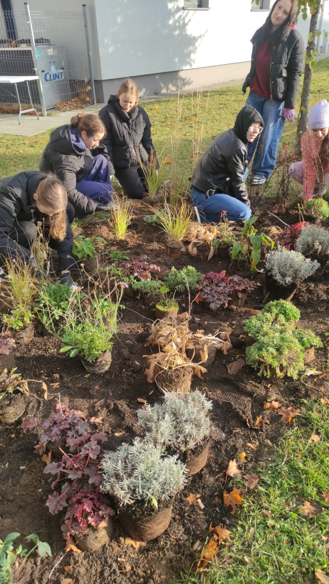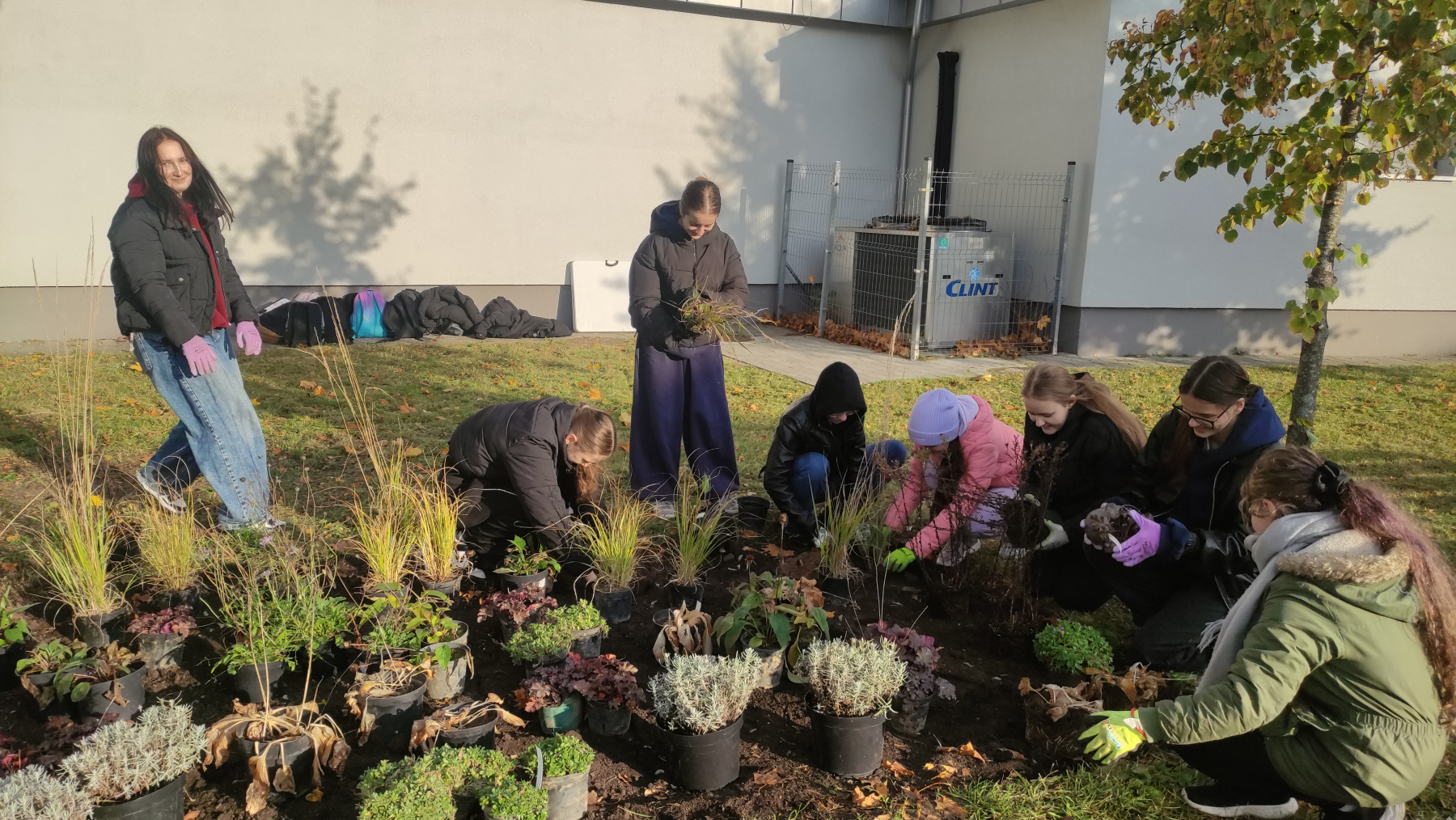 Po ogłoszeniu wyników uczniowie przystąpili do realizacji zwycięskich projektów. Wspólnie z przedstawicielami Miejskiej Biblioteki Publicznej, panem Burmistrzem i mieszkańcami Człuchowa, sadzili byliny i krzewy, tworząc nową, zieloną przestrzeń miejską.